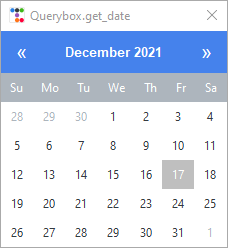 get_date(parent=None, title=' ', firstweekday=6, startdate=None, bootstyle='primary') staticmethod
